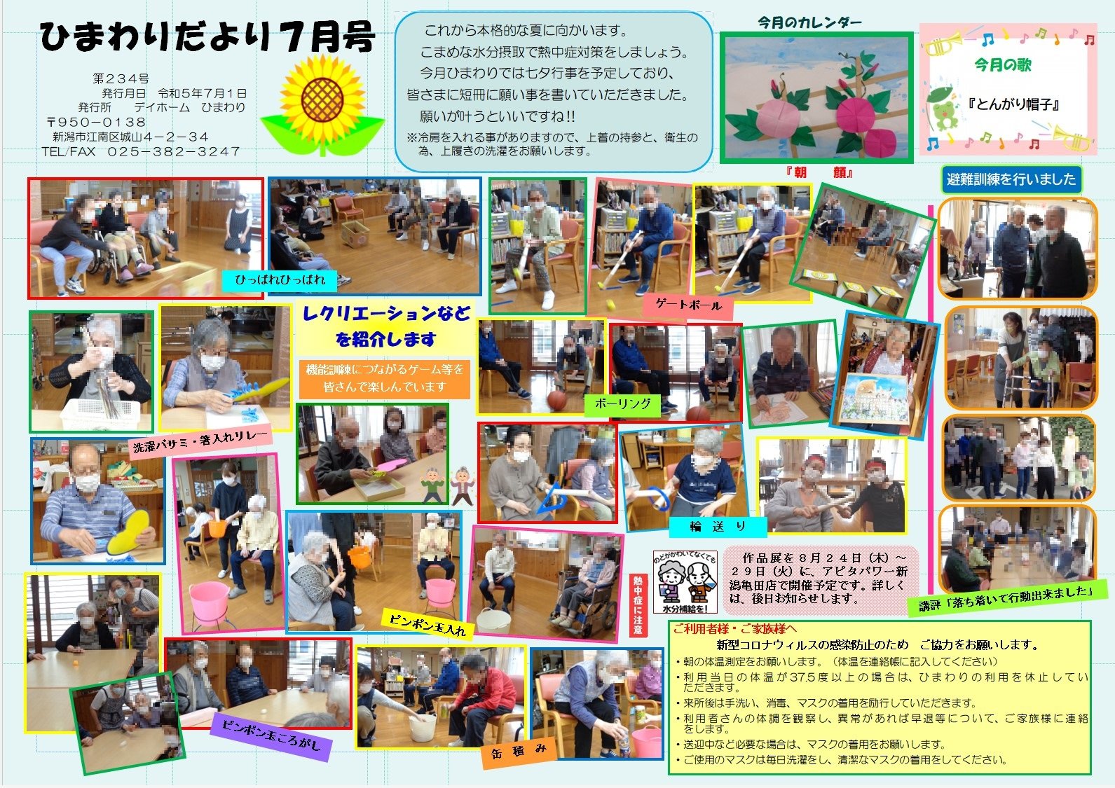 ひまわりではいろいろな活動を通して物忘れの進行予防に努めております。